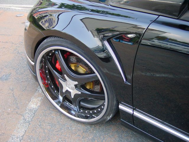 な、なんとホイールはレーベンハートLSR、22インチ!!しかも超高級車コンチネンタルGT用をさりげないフェンダー加工にダクト入り!!エアロはF/グリルはアゼクト、R/ナンバー6にバーンブレッセン・カーボンドアミラーカバー、タケローズGTウイングとラグジュアリー&スポーティをシンプルに仕上げられています(^^) |