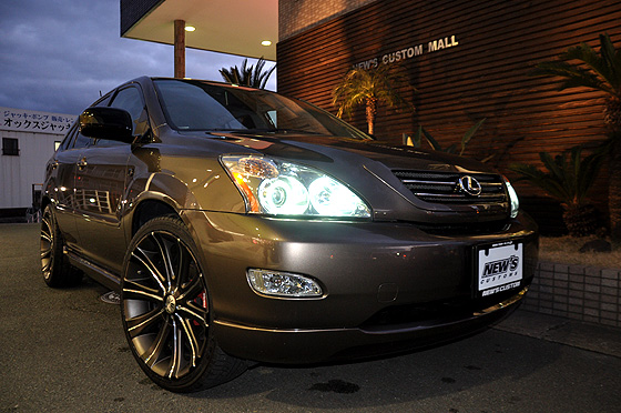 ニューズハーフエアロを身にまとい、ボディカラーをセパンブロンズにてオールペン! さらに足元のマーテル レオンにもマットブラックにてペイントを施し激渋ハリアーの完成です!! ヘッドライトにはイカリングリアバンパーにはLEDマーカーも入れてポイントも押さえてます!