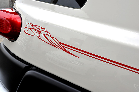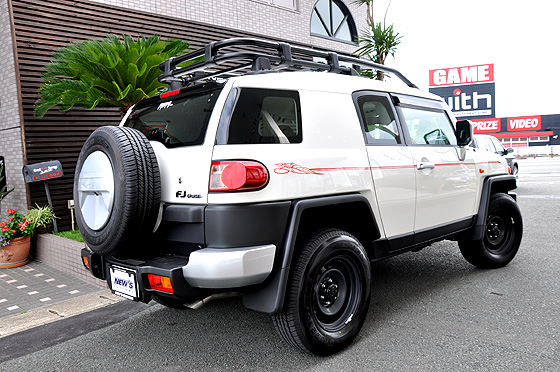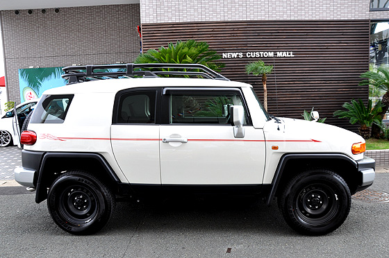 遂に登場!FJクルーザー様!ホワイトボディにアクセントでレッドのデコライン☆リアはピンスト調でオシャレですね!次はホイールですかぁ?