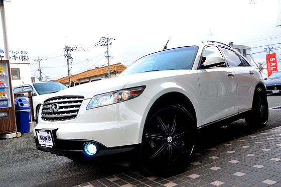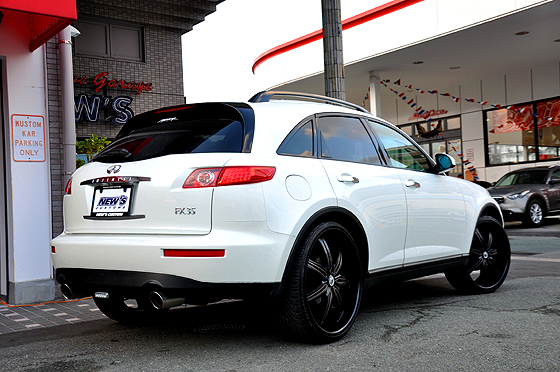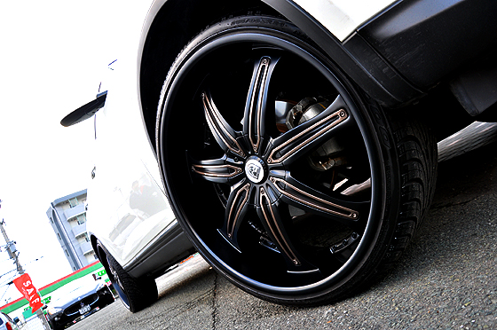 足元の24インチのホイールがインパクト絶大なFX35!LAXANI LX-7をカスタムペイントにて仕上げています!お次は車高調ですね!