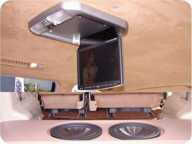 ・シート張替え済み ・天井は、アルカンターラにて張替え済み ・インパネは、白大理石調にてフルイージーグラフィック ・その他内装はオールペイント済み ・オリジナルブラウンマット ・3列目シートレス ・ALPINE SYSTEM + サブウーファー ・助手席前・前席ヘッドレストモニター、天吊りモニターもALPINEを使用